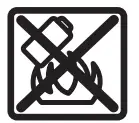 Protect the battery against heat, e.g. against continuous intense sunlight, fire, dirt, water and moisture.