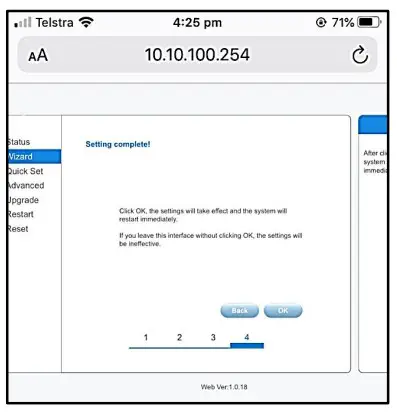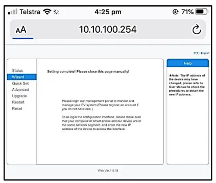 After 10-20 seconds, you should get a message ‘’Settings complete! Please close this page manually!”