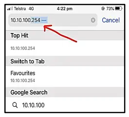 Open Safari or Google Chrome Browser and type IP address 10.10.100.254 on the search bar. Then Press Go.