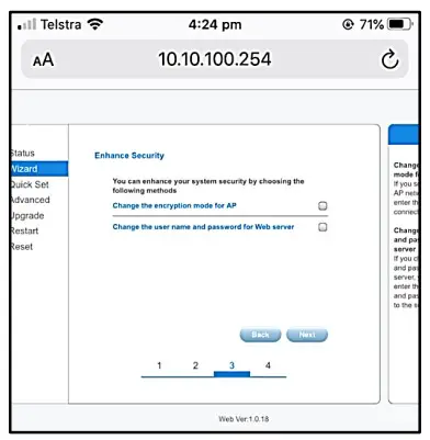 Once you have entered the password, you will see a ‘Enhance Security’ screen as shown below. You do not need to change anything here. Click Next.