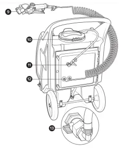 - Follow all instructions from the chemical manufacturer and fill the tank with a ready-touse solution or mix to the chemical manufacturer instructions. Important! Do not spill the solution on the air compressor.