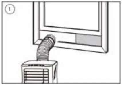- Insert the hose connector air conditioned end into the openings at the back of the air conditioner.