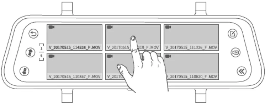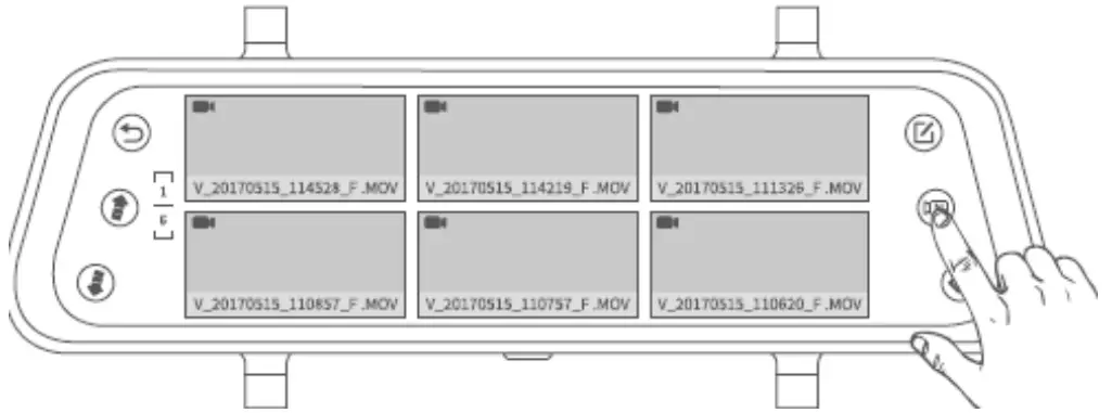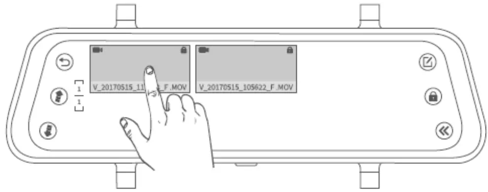 to move the previous/next page to view all the normal video files with the format of thumbnails. - Tap file. on the top right corner to manually lock/unlock the current video file.