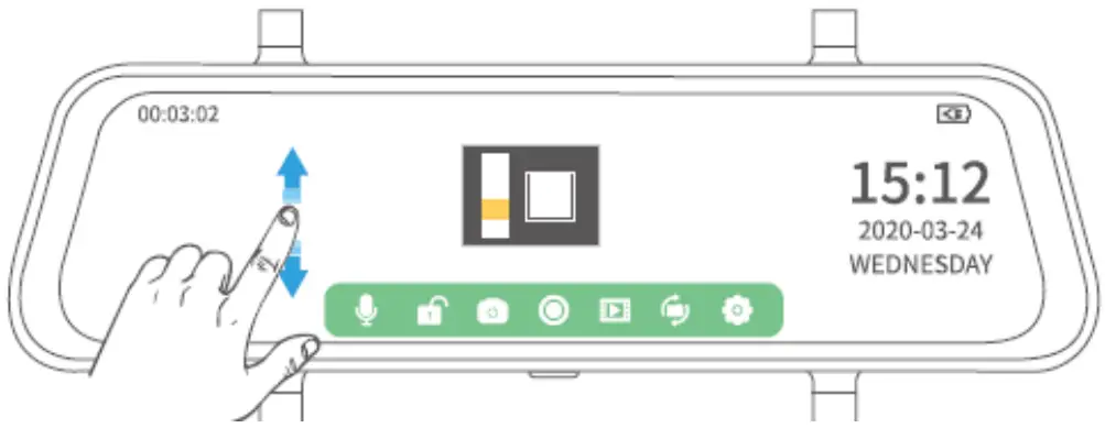 Simply press the Power Button once to switch the screen of when the Mirror Dash Camera is ON; press it again or tap the touchscreen to wake the camera up.