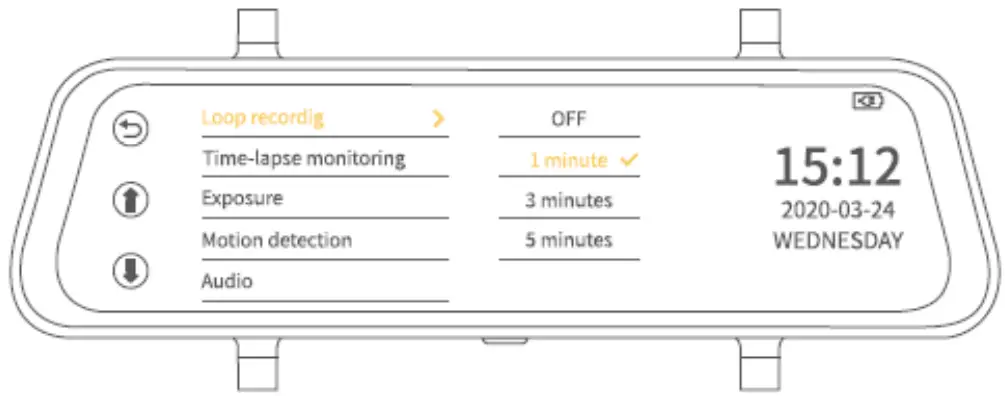 - Make sure you select 1 minute, 3 minutes or 5 minutes when setting Loop Recording to prevent the dash camera from stopping recording once the space of the memory card is full.