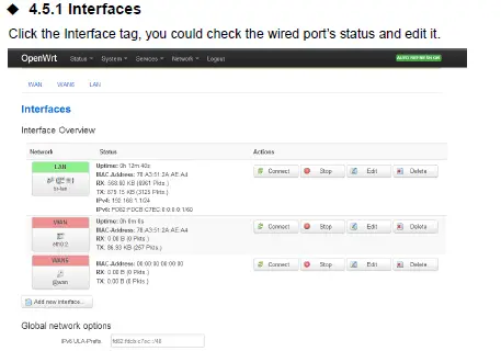 Click the Interface tag, you could check the wired port’s status and edit it.