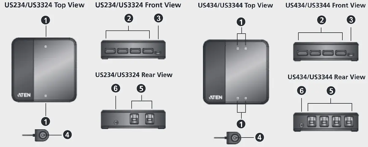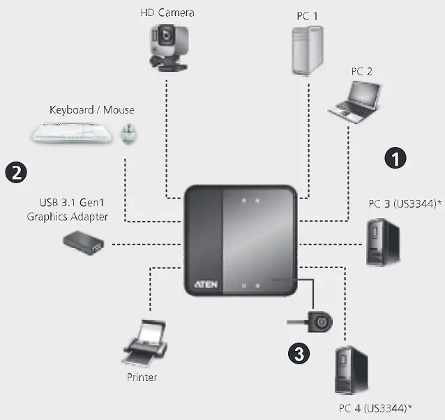 ATEN US434 4 Port USB 3.1 Gen 1 Peripheral Sharing Device