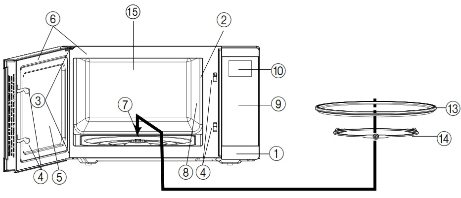 - Handle with care when removing items from the oven so that the turntable does not displace.