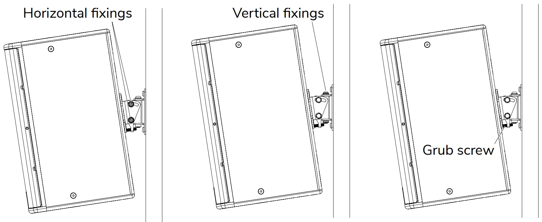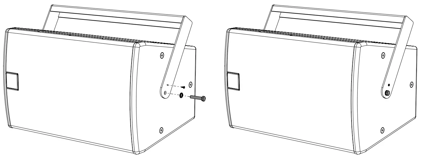 Once the loudspeaker is in position and you are happy with the angle adjustments, tighten all fixings as shown to lock the cabinet in place.