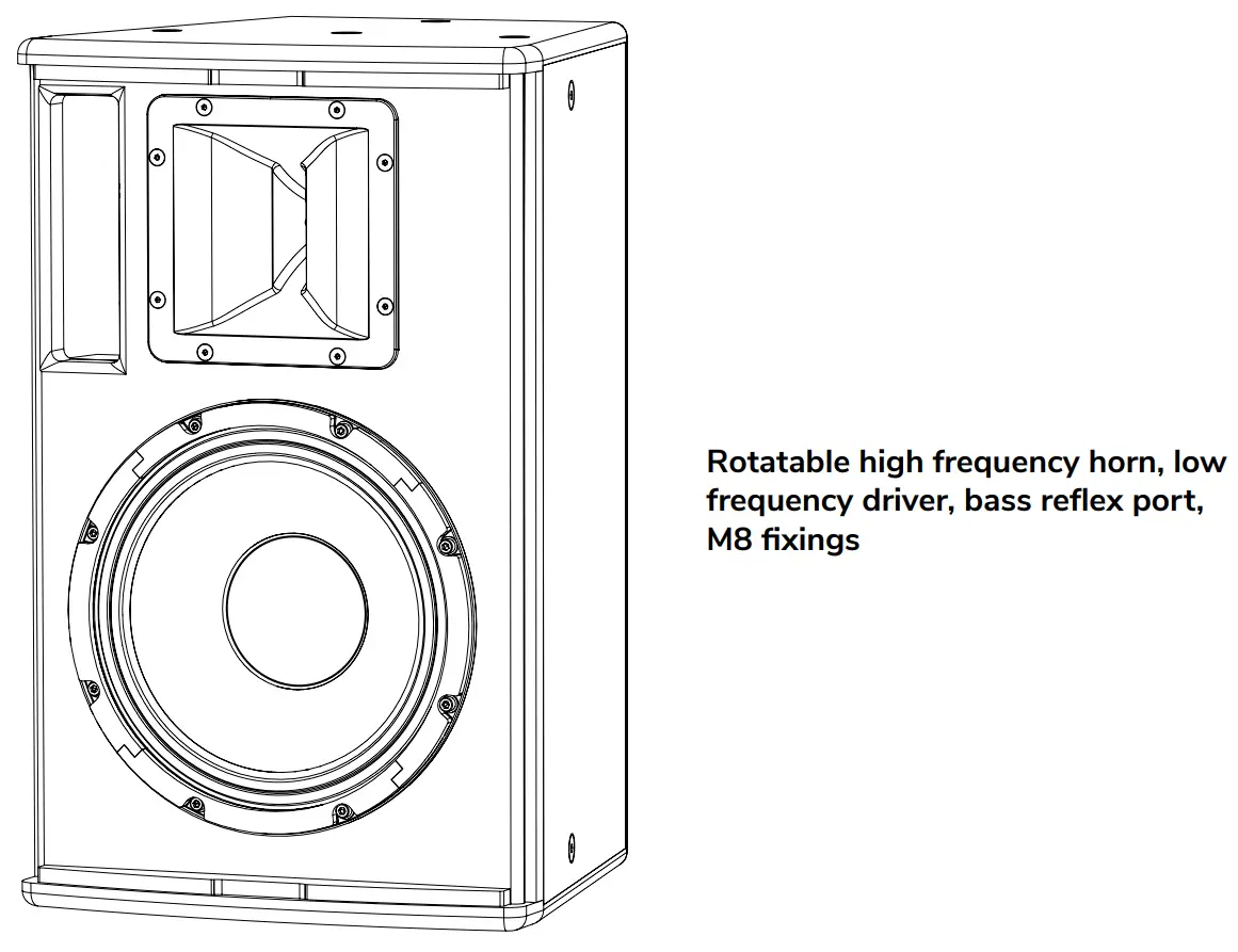 - Ensure the loudspeaker is mounted with appropriately sized fixings of suitable load bearing capacity