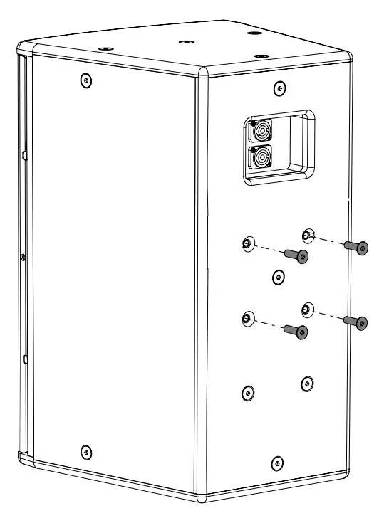 Position loudspeaker cabinet section of Wall Bracket over the four M8 mounting points and secure with the four bolts from the back of the cabinet