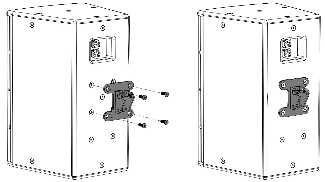- Use the supplied bolts to fix the bracket to the loudspeaker