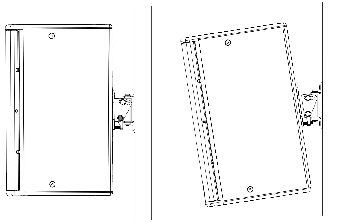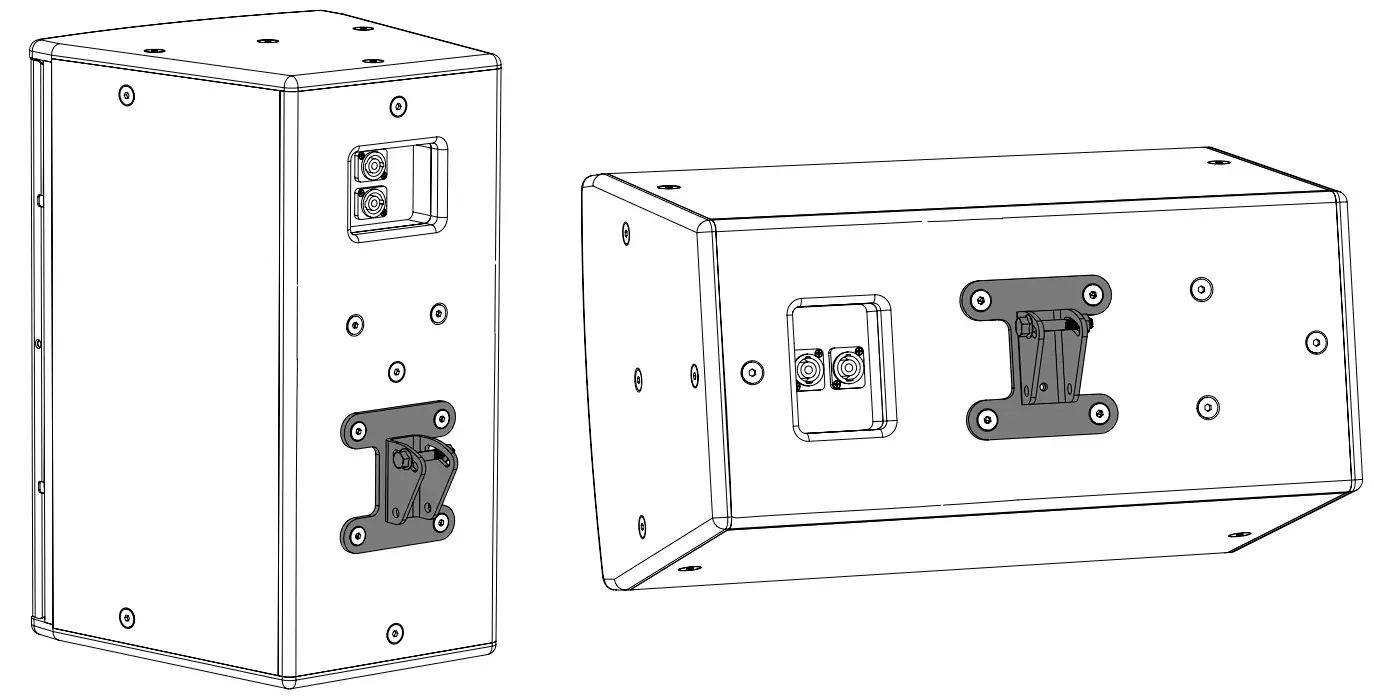 Optional Wall Bracket mounting positions enable greater down-tilt, using the lower four M8 bolt position, or the loudspeaker can be mounted in landscape mode by rotating the bracket as shown: