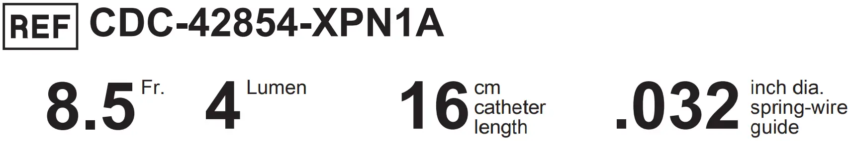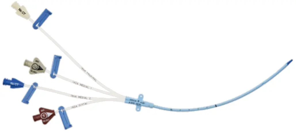 1: Arrowg+ard Blue Plus®1 Four-Lumen Catheter: 8.5 Fr. (3.0 mm OD) x 16 cm, Pressure Injectable.