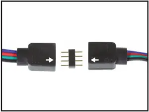 Connect the LED Strip male connector into the RGB Control box as shown in the picture below. From there your then connect the Power supply to the RGB Control box as the picture also shows below. The other cable on the Control Box is the IR sensor for the Remote.