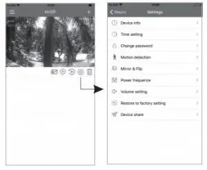 How to set device: Open the App NVDP and make sure there is device online, then you can see the steps according to direction of arrow as pictures: