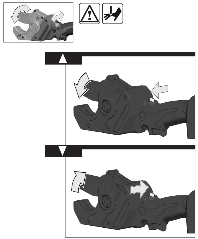 Blade release: to open or close the blade when the battery pack has no power or has been removed. It will not usually remove the blade from a partial cut or open the blade from a tight close.