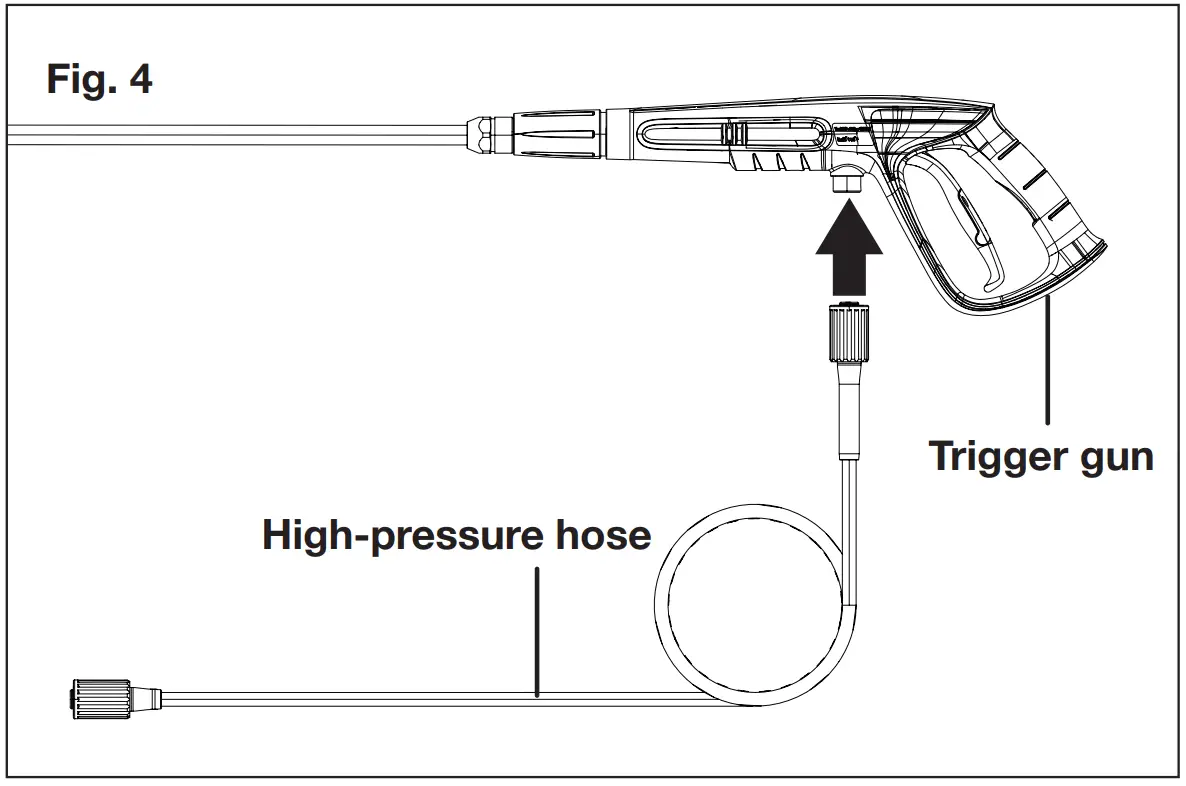 - Disconnect the high-pressure hose connection on the trigger gun handle.