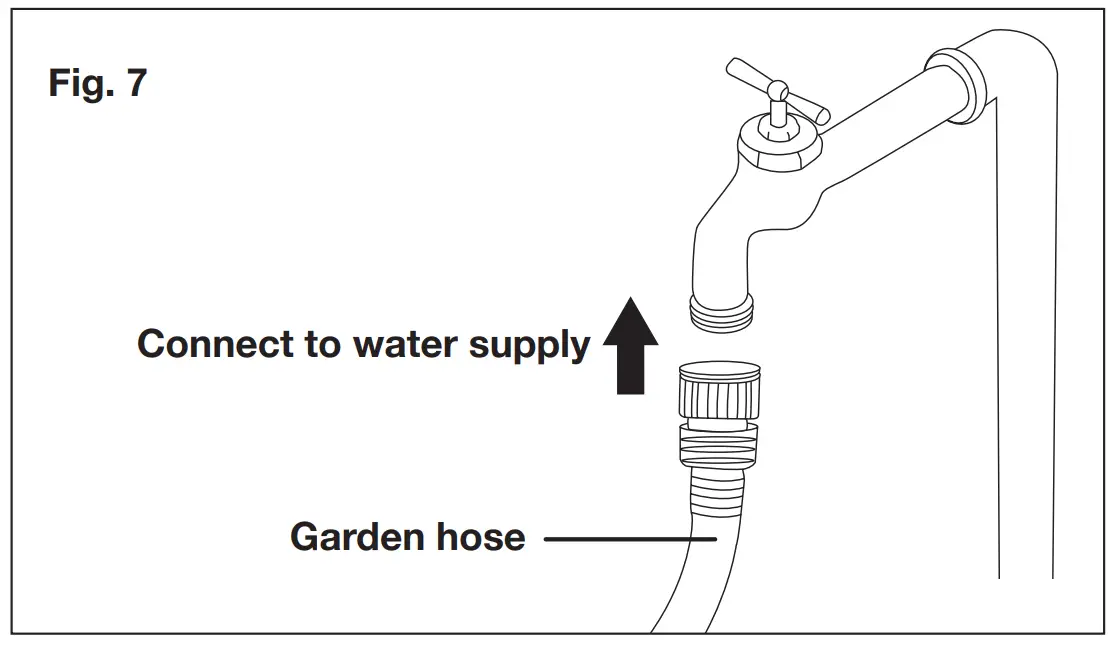 - Disconnect the garden hose from the water inlet on the unit.