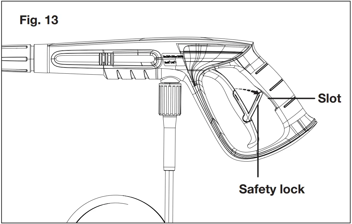 - Engage the gun safety lock (Fig. 13).