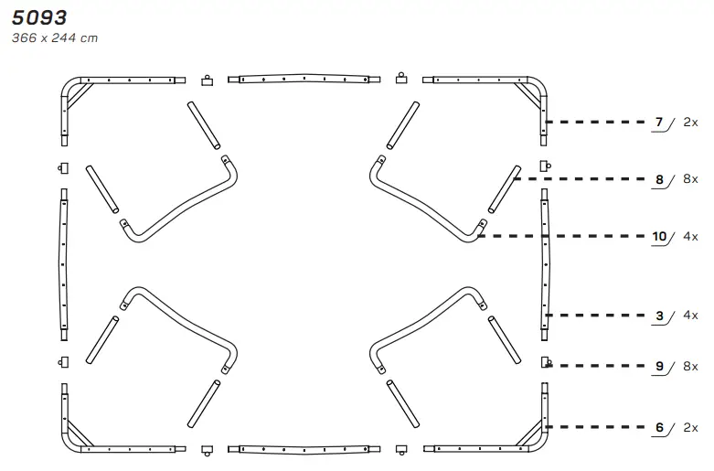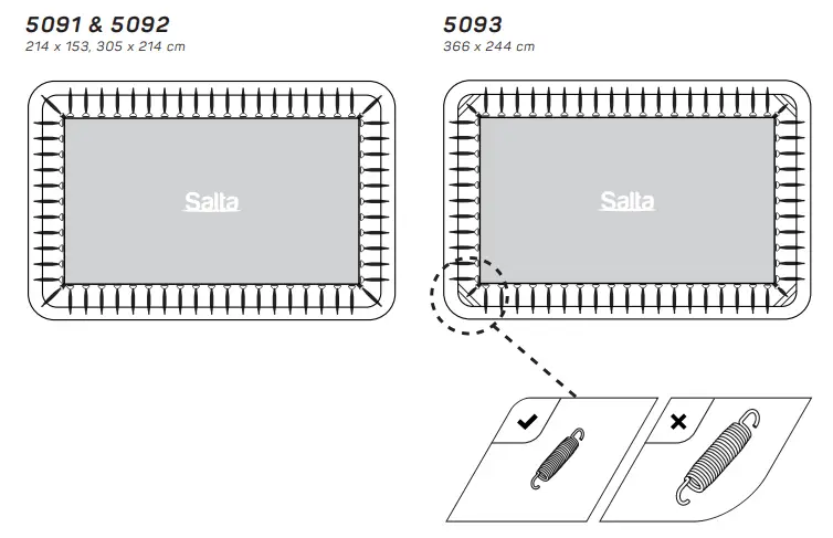 COMFORT EDITION SIZE MAX. WEIGHT 5091 214 x 153 cm 100 kg 5092 / 5093 305 x 214 / 366 x 244 cm 120 kg - WARNING! Always close net opening before jumping.