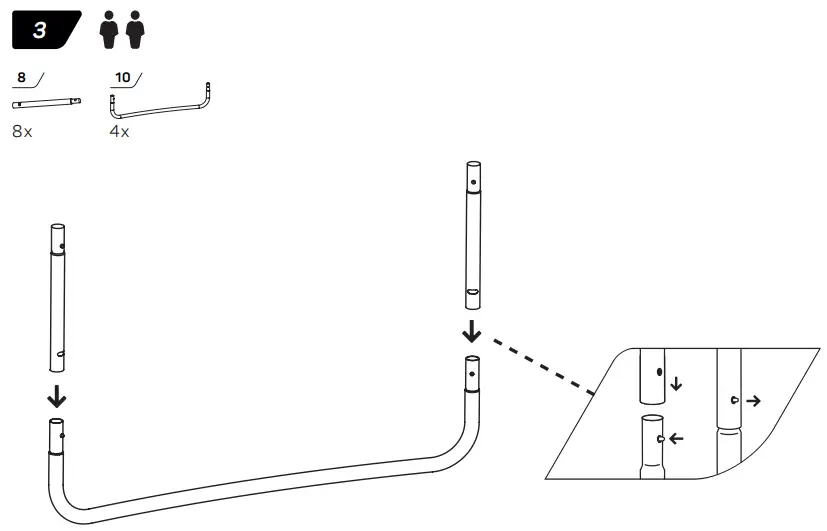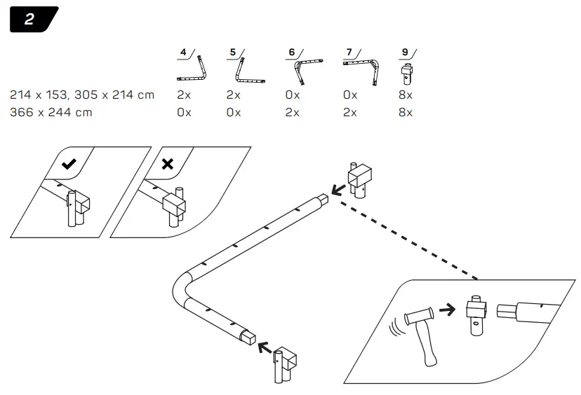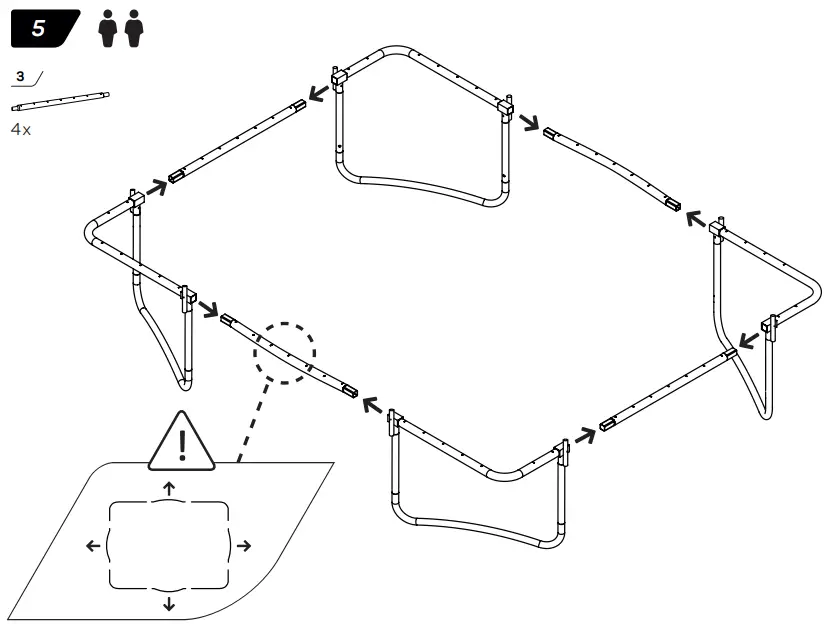 - WARNING! The trampoline shall be assembled by an adult in accordance with the assembly instructions and thereafter checked before the first use.