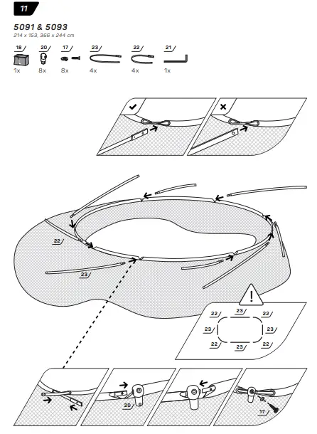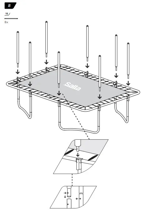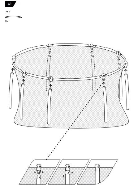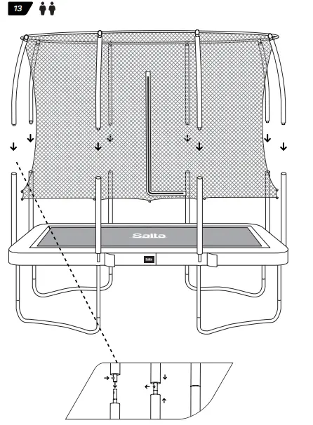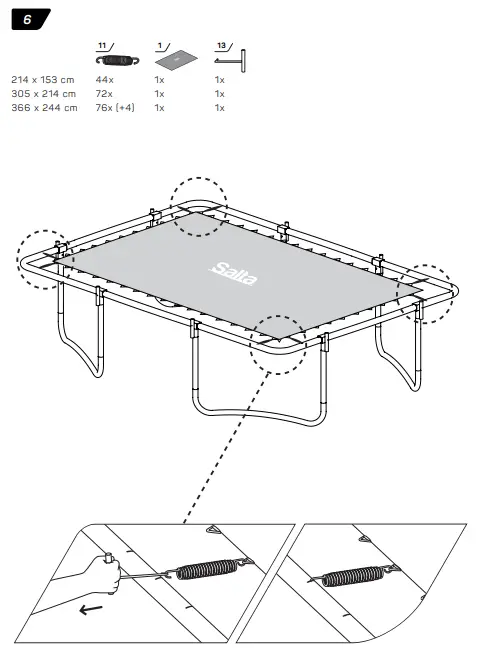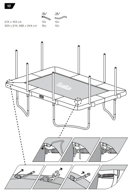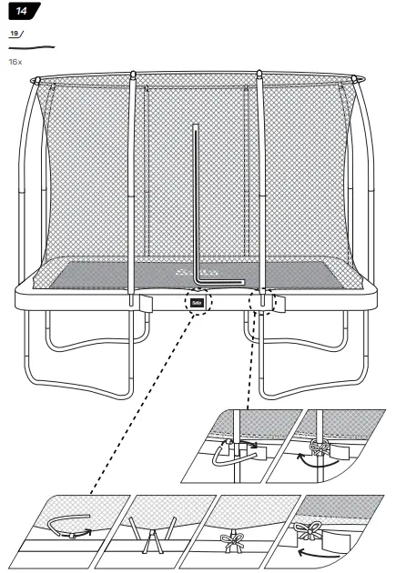 - Make sure that the hook-and-loop fasteners are closed correctly during use of trampoline.