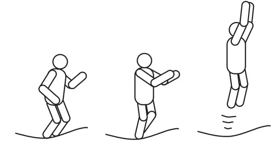 - Bounce back to basic bounce position by swinging arms up.