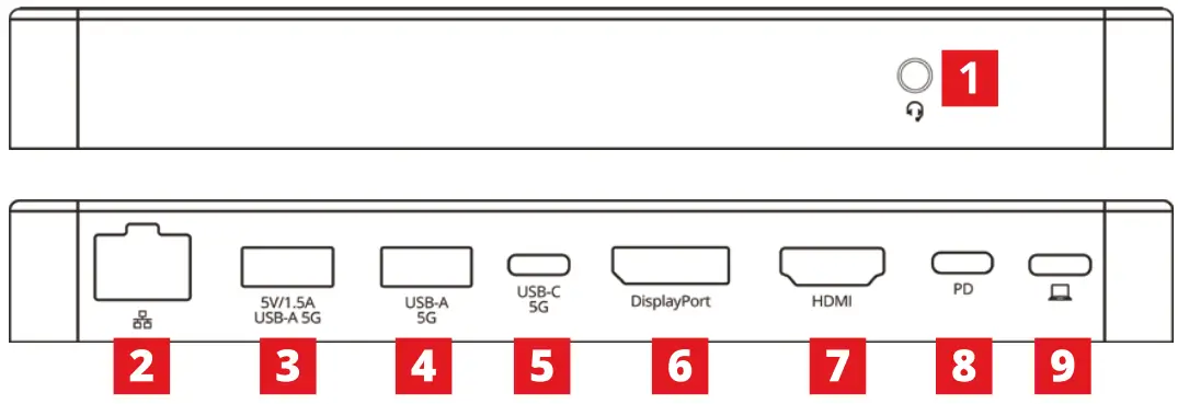 - PD charging input: connect to your PD charger Input: 1 00W (max), charging 85W (max) (1 SW for the docking use)