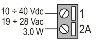 | L | 10 ÷ 40 Vdc, 19 ÷ 28 Vac | |