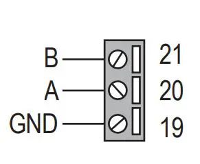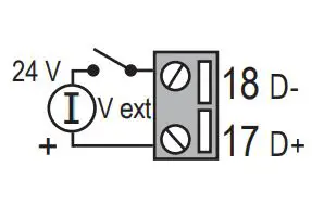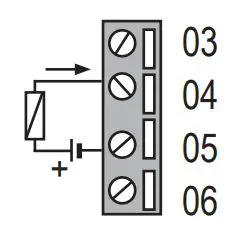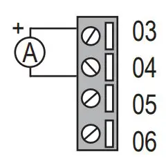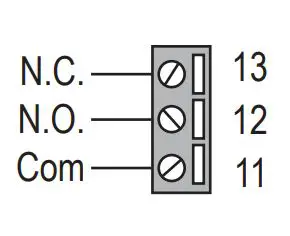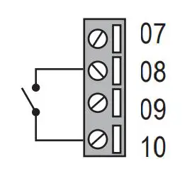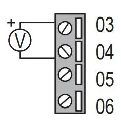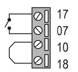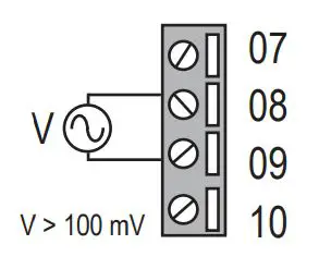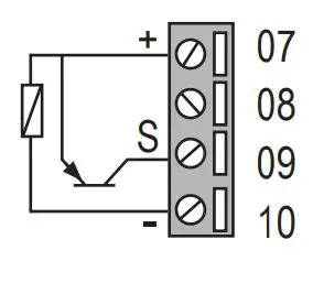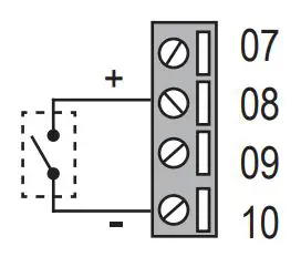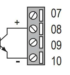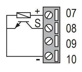 The internal power supply for the sensors, equal to 17 Vdc, is available at terminals 7 (+) and 10 (-).