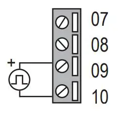 ![]() | Input type | 1= Reed 6= Photoelectric (ASTRA) 2= npn 2 wires 7= HALL 3= npn 24 V (3 wires) 8= 24 V input 4= pnp 24 V (3 wires) 9= TTL input 5= NAMUR 10= Variable reluctance | 3 = npn 24 V (3 wires) | ||