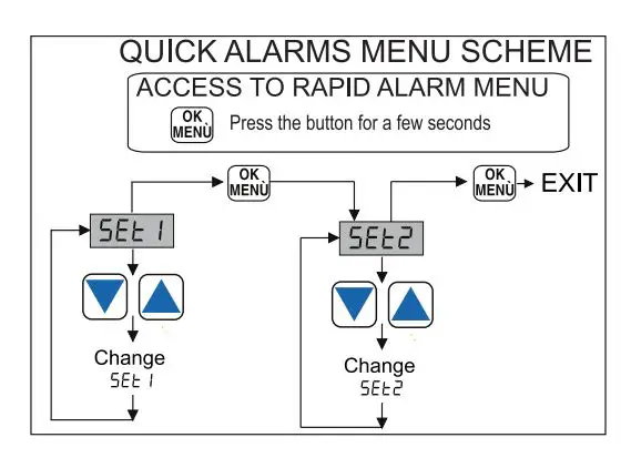 ![]() | Access to the programming menu. | ![]() | Access to the Quick Alarm Menu |