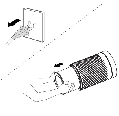 - Unplug the appliance, and take out the HEPA-filter.