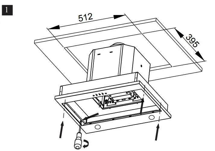 The extractor unit is fitted into the base board of the cooker hood (thickness: 12 to 22 mm). (Fig 1) Connect the electrical plug and set the extractor tube in place. Fit the appliance into the cutout and fix it with the 4 screws supplied.