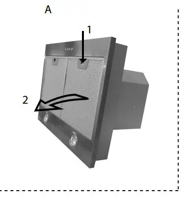 now be removed. - The metal grease filters should be washed, by hand, in mild soapy water or in a dishwasher.