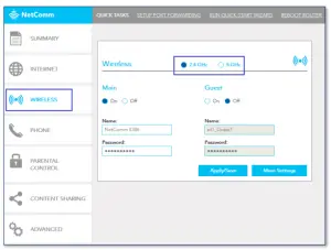 - Navigate to Wireless and select 2.4 GHz or 5 GHz.