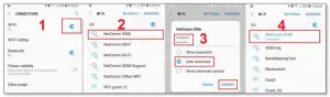Tap your WiFi network name/SSID [2](in this example, it is “NetComm 8386”), enter the WiFi password [3], select Auto reconnect [3]and then select Connect [4].
