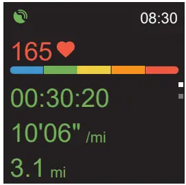 Swipe the screen up or down to flip through exercise data. Swipe the screen to the left so you can control the music playing on your phone.