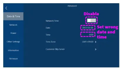 - Set wrong date and time to “Date” and “Time