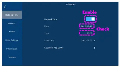 - Switch “Network Time” to enable