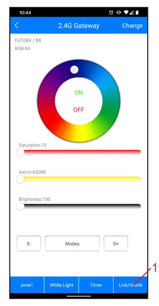 - Zones 1–8 On (|)/Off (O) Allows up to eight zones (channels) of RGBW and/or RCB+CCT lights to be separately linked and controlled by remote/app. Pressing any Zone On(|) button activates that zone. ommands will affect only lights in that zone. Once linked to a zone, lights remain linked until they are unlinked.