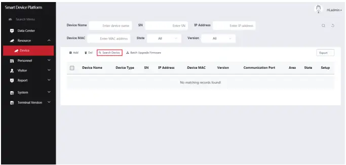 Step 1: After logging into the platform, check “Resource – Device – Search Device”.