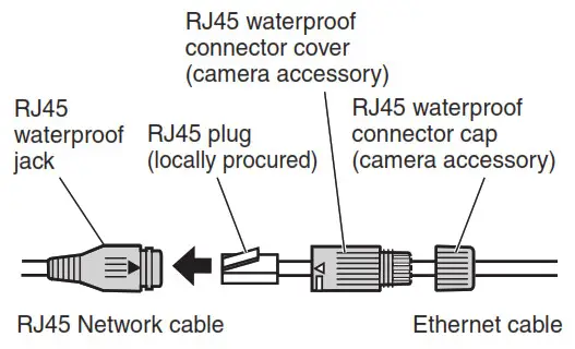 NOTE Refer to the Installation Guide for the camera for information on how to assemble the waterproof connector. - If necessary, also connect and waterproof other cables as shown in the illustration at right.