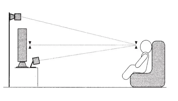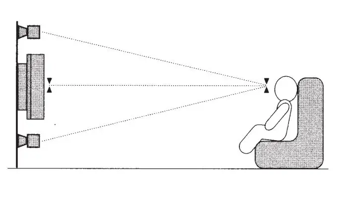 Position above or below screen, angled towards the listener If possible.