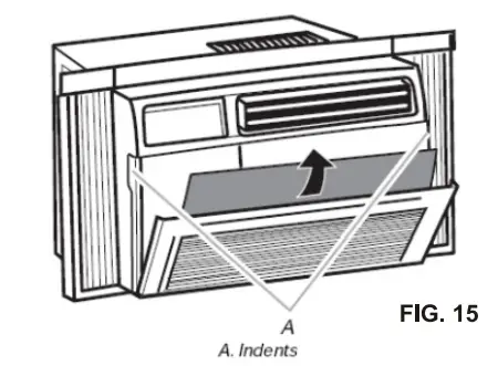 - Remove the filter by pulling down on the indents of the filter door on the front of the unit . (See FIG . 15 )