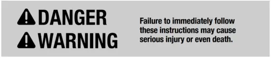 ![]() | This is a safety alert symbol. This symbol alerts you to potential hazards that can harm you or others or even cause death. All safety messages will directly follow the safety alert symbol and/or the words “DANGER” or “WARNING”. |