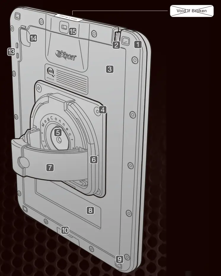 The tamperproof label must remain intact at all times. This ensures the tablet and case were installed in our certified installation centers. Tampering or removing the label voids the certified installation of the solution. See section “Label Inspection”