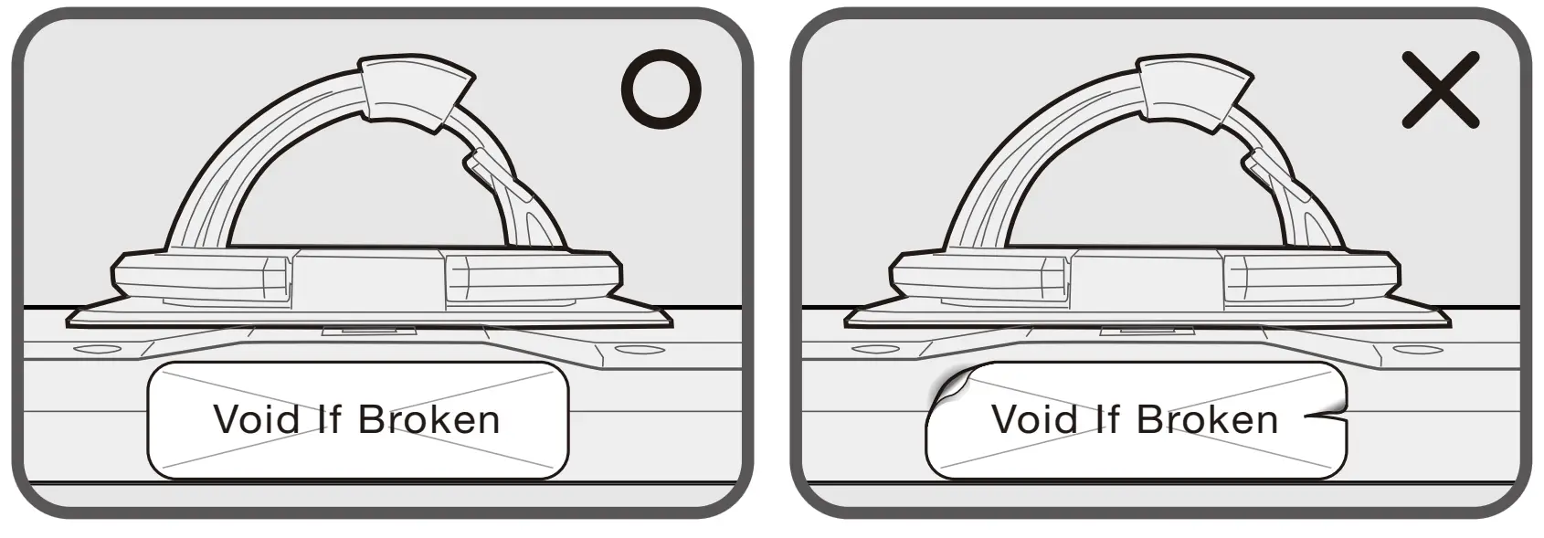 NOTE: Removal of the device from the aXtion Extreme Case breaks the tamperproof label thus voiding all certifications. The Joy Factory Inc. disclaims all liability and all warranties, whether expressed or implied, in situations where the Case is mishandled.