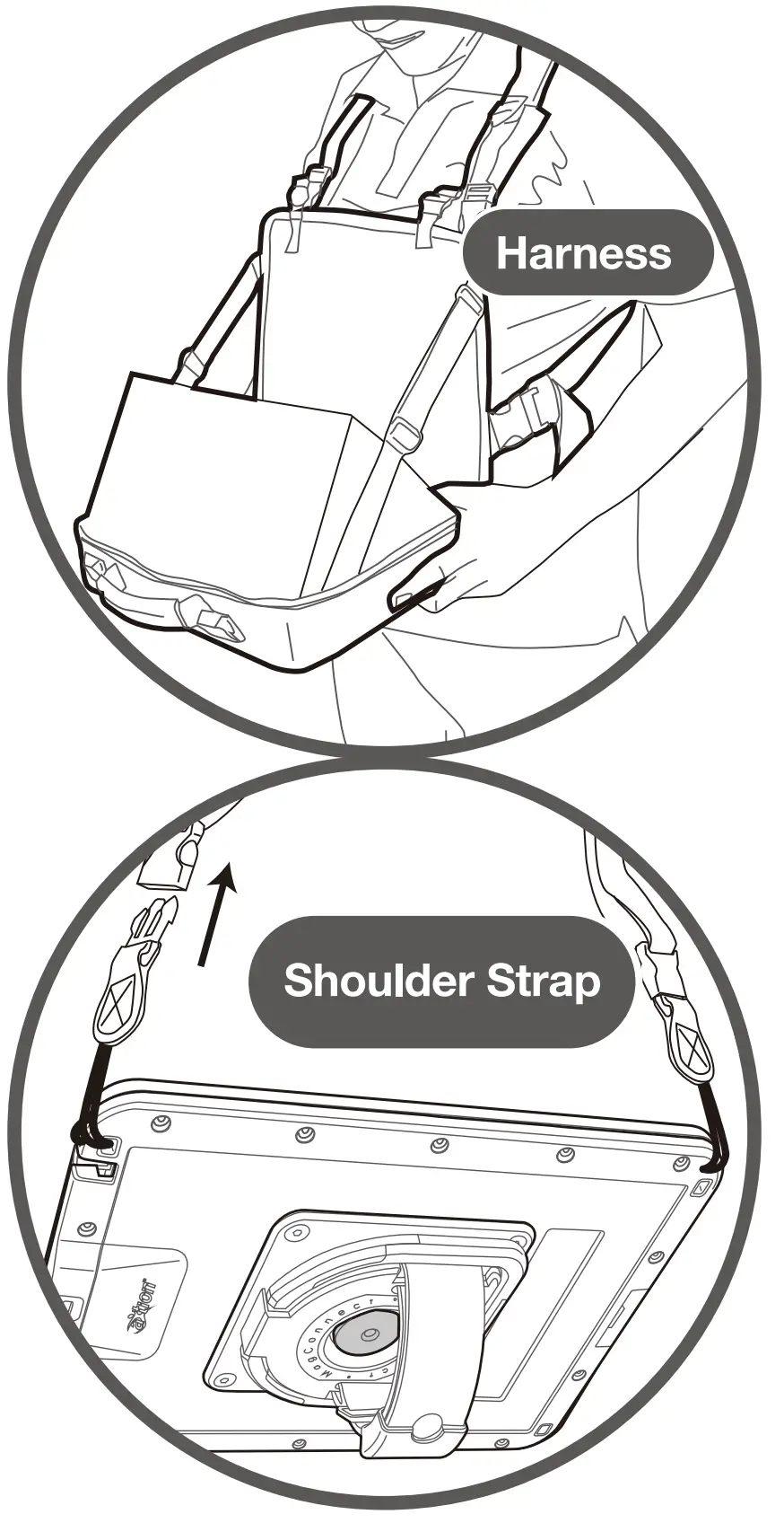 Harness secures the case for safe transport and provides coverage from sun glare.